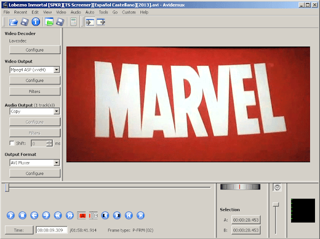 inicio y el final del vídeo original que tenias cargado en Avidemux